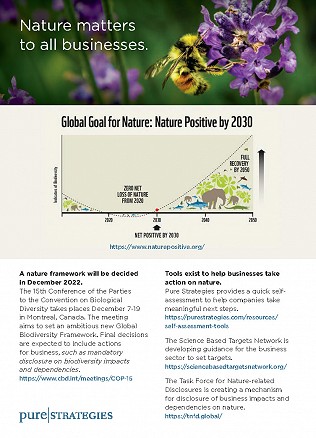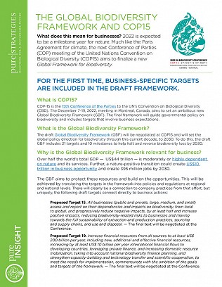 What does this mean for businesses? 2022 is expected to be a milestone year for nature. Much like the Paris Agreement for climate, the next Conference of Parties (COP) meeting of the United Nations Convention on Biological Diversity (COP15) aims to finalize a new Global Framework for Biodiversity.